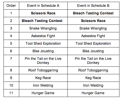 These schedules are almost identical and both start with the tasting contest and the race, but the orders are reversed so the schedules are not identical.